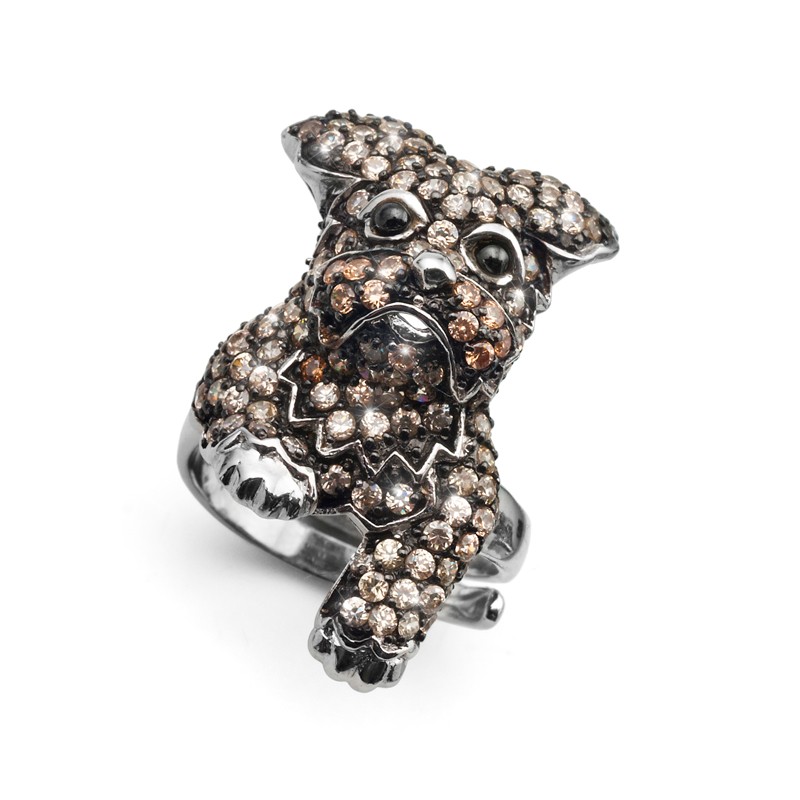 Stříbrný prsten Cute Doggy ztělesňuje chlupatého mazlíčka, jež patří k nejoblíbenějším. Pes je vyzdoben v hojné míře hnědými Swarovski kamínky a jejich tón přechází od jemnější k sytější barvě. Stříbro vám dá záruku luxusu a dlouholeté krásy. Třpyt Swarovski krystalů se bude krásně vyjímat na slunci.